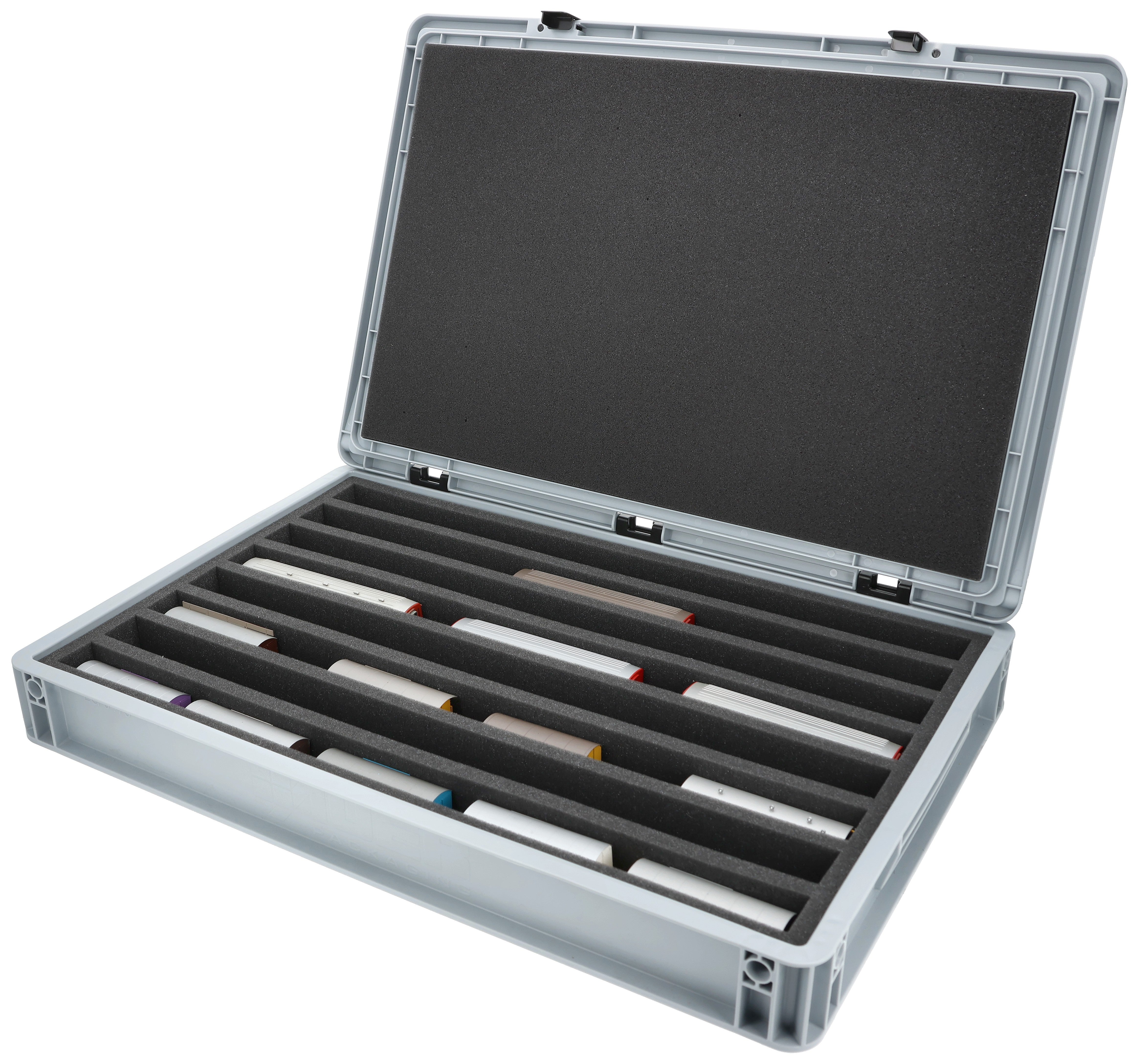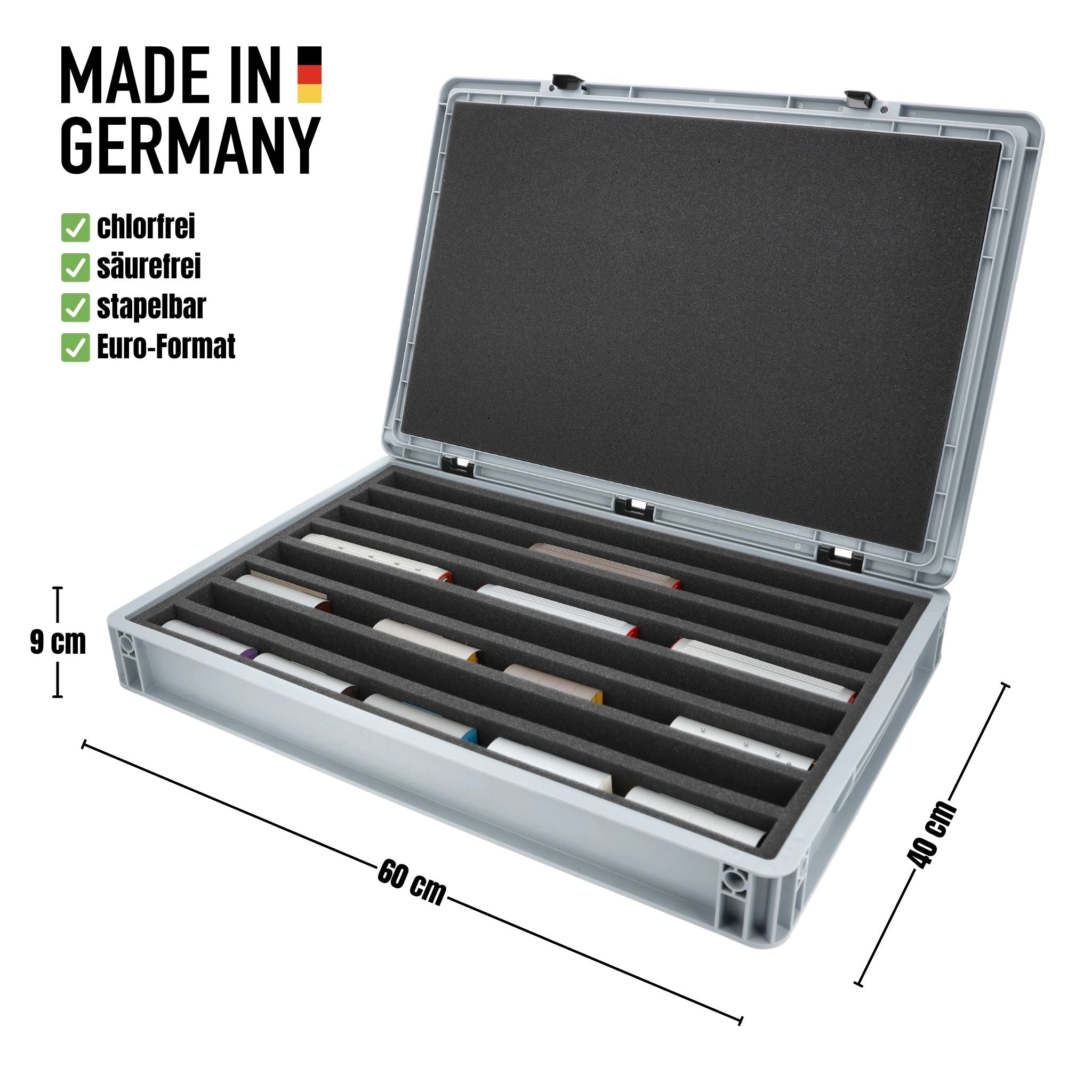 Eurobox 60 x 40 cm Set für Modelleisenbahnen - Spur H0m - 8 Fächer - Schaumstoffeinlage zur stehenden Aufbewahrung