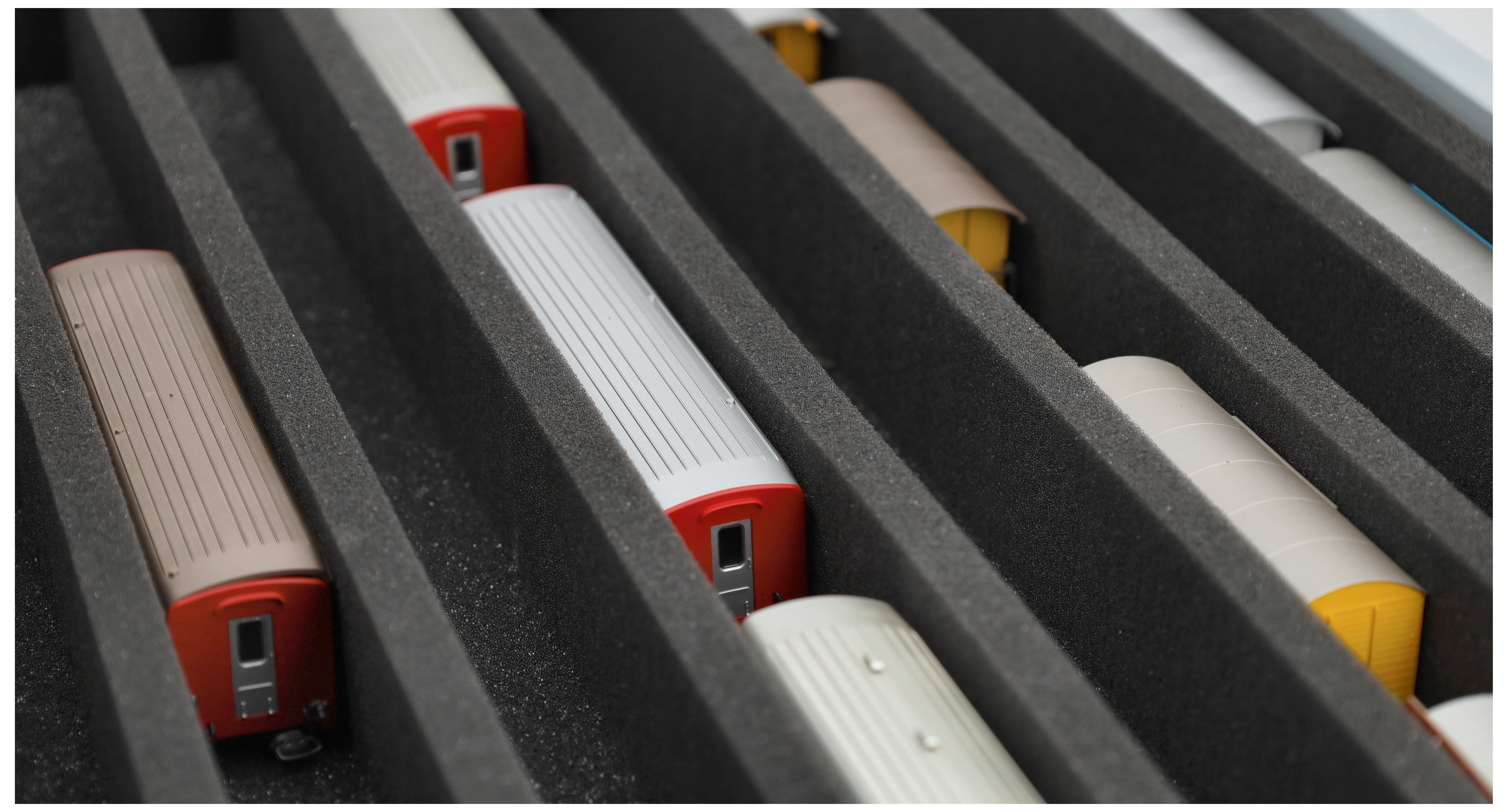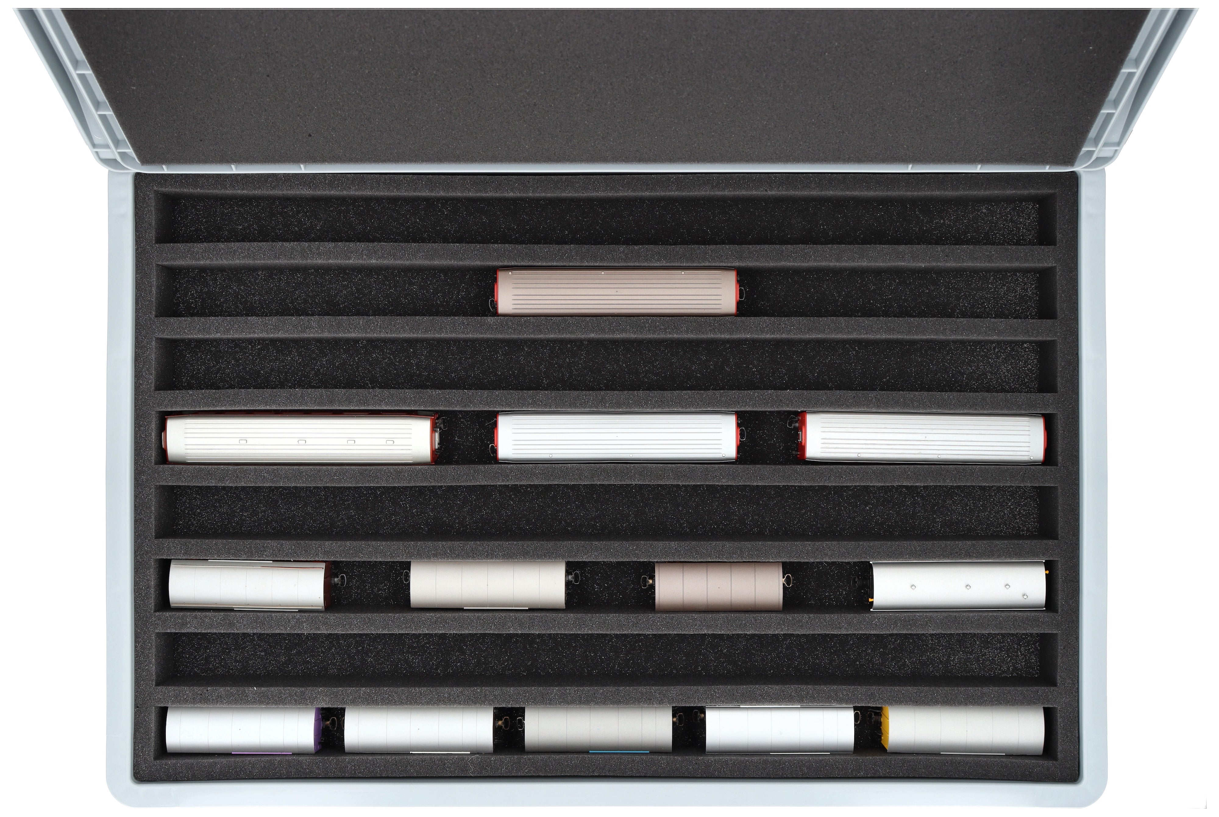 - 8 Fächer - Schaumstoffeinlage zur stehenden Aufbewahrung von Loks, Waggons und Fahrzeugen