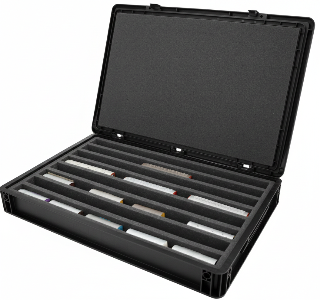 - Zusätzliche Dämpfung und Sicherheit durch Ausgleichsboden und selbstklebende Schaumstoffabdeckung für die Deckelinnenseite