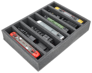 570 mm x 360 mm x 50 mm Schaumstoffeinlage für Modelleisenbahn - Spur 00 - 5 Fächer - für liegende Aufbewahrung - JV050A004