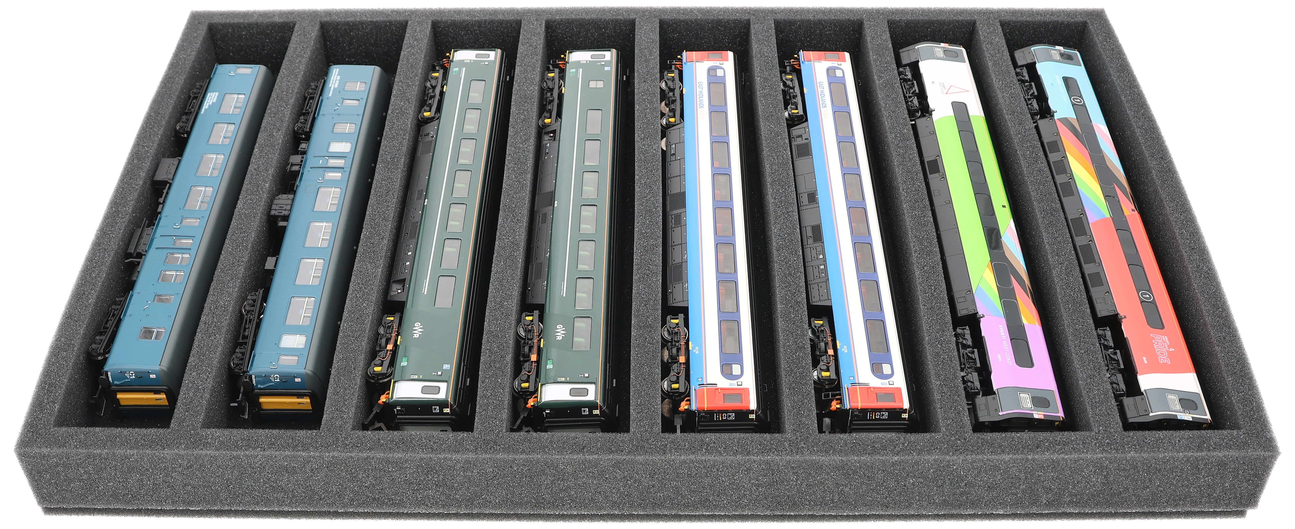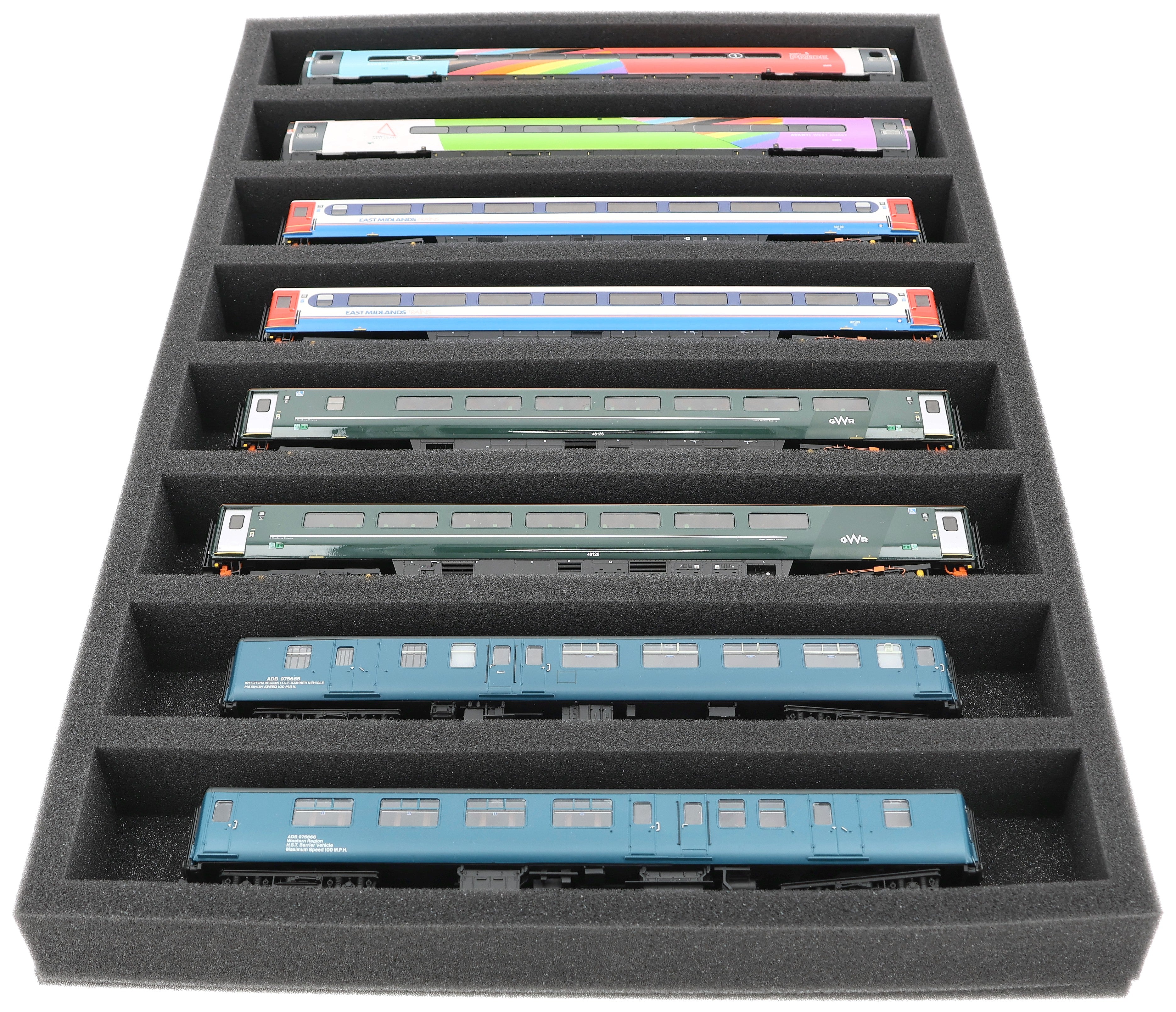 570 mm x 360 mm x 50 mm Schaumstoffeinlage für Modelleisenbahn - Spur 00 - 8 Fächer - für liegende Aufbewahrung - JV050A006