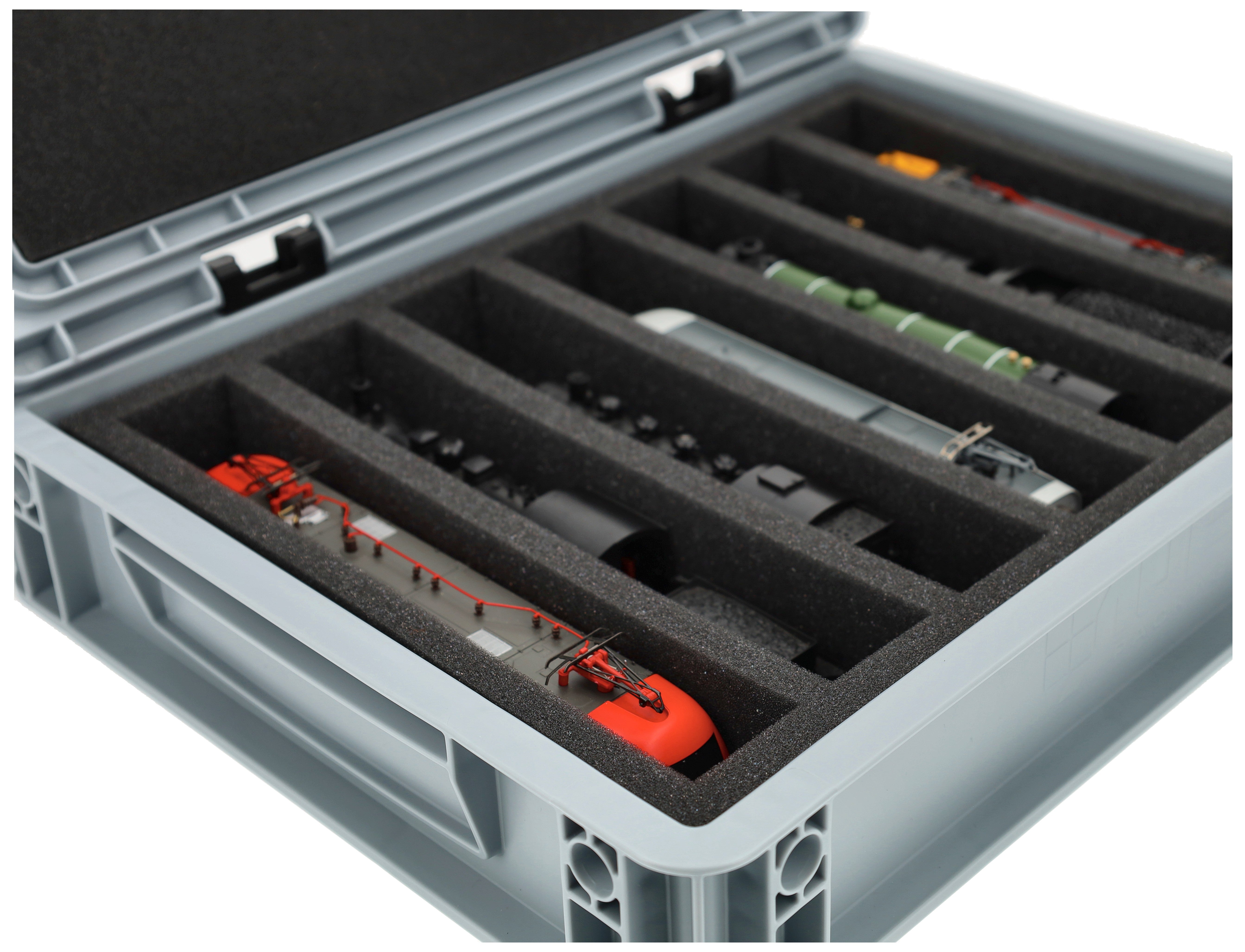 Eurobox 40 x 30 cm Set für Modelleisenbahnen - Spur 00 - 7 Fächer - Schaumstoffeinlage zur stehenden Aufbewahrung