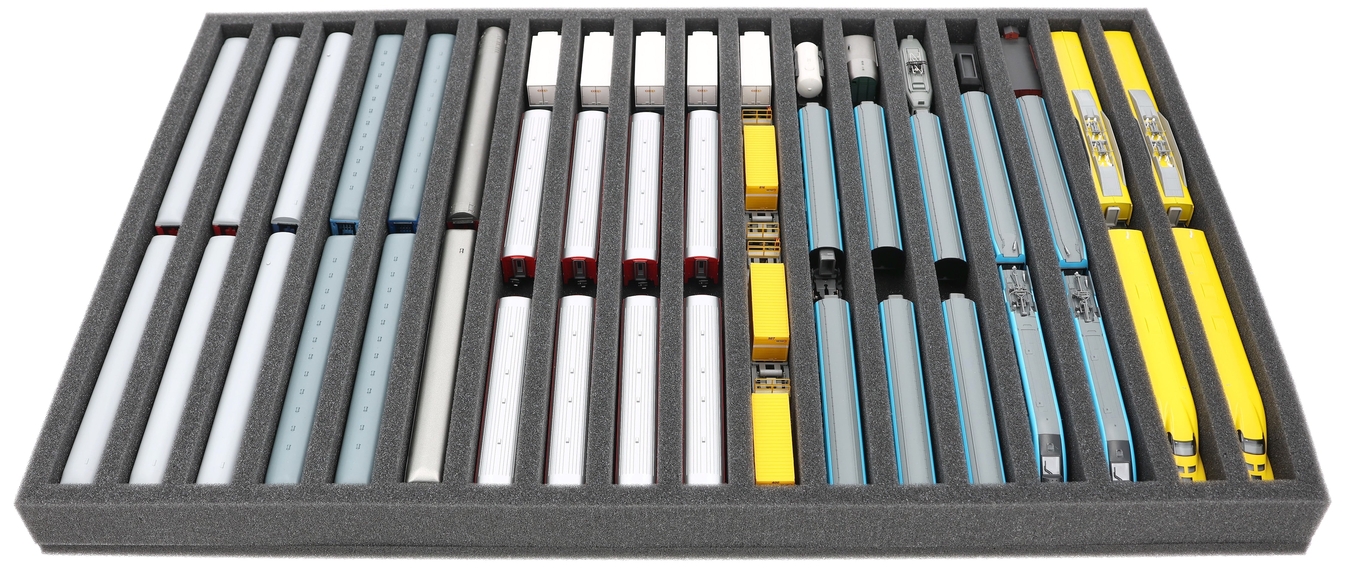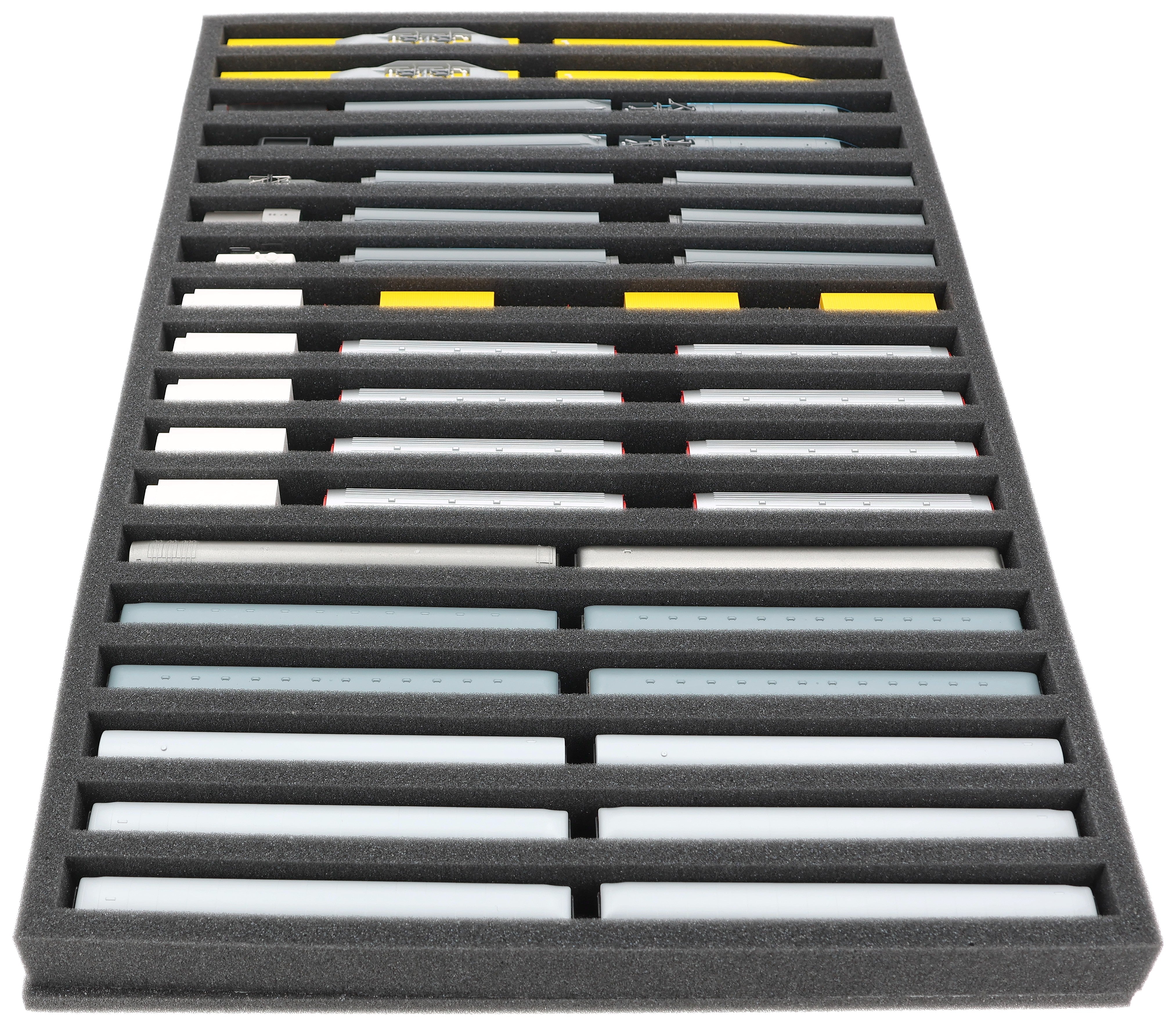 570 x 370 x 40 mm Schaumstoffeinlage für Modelleisenbahn - Spur N - 18 Fächer - für stehende Aufbewahrung - JV040A002