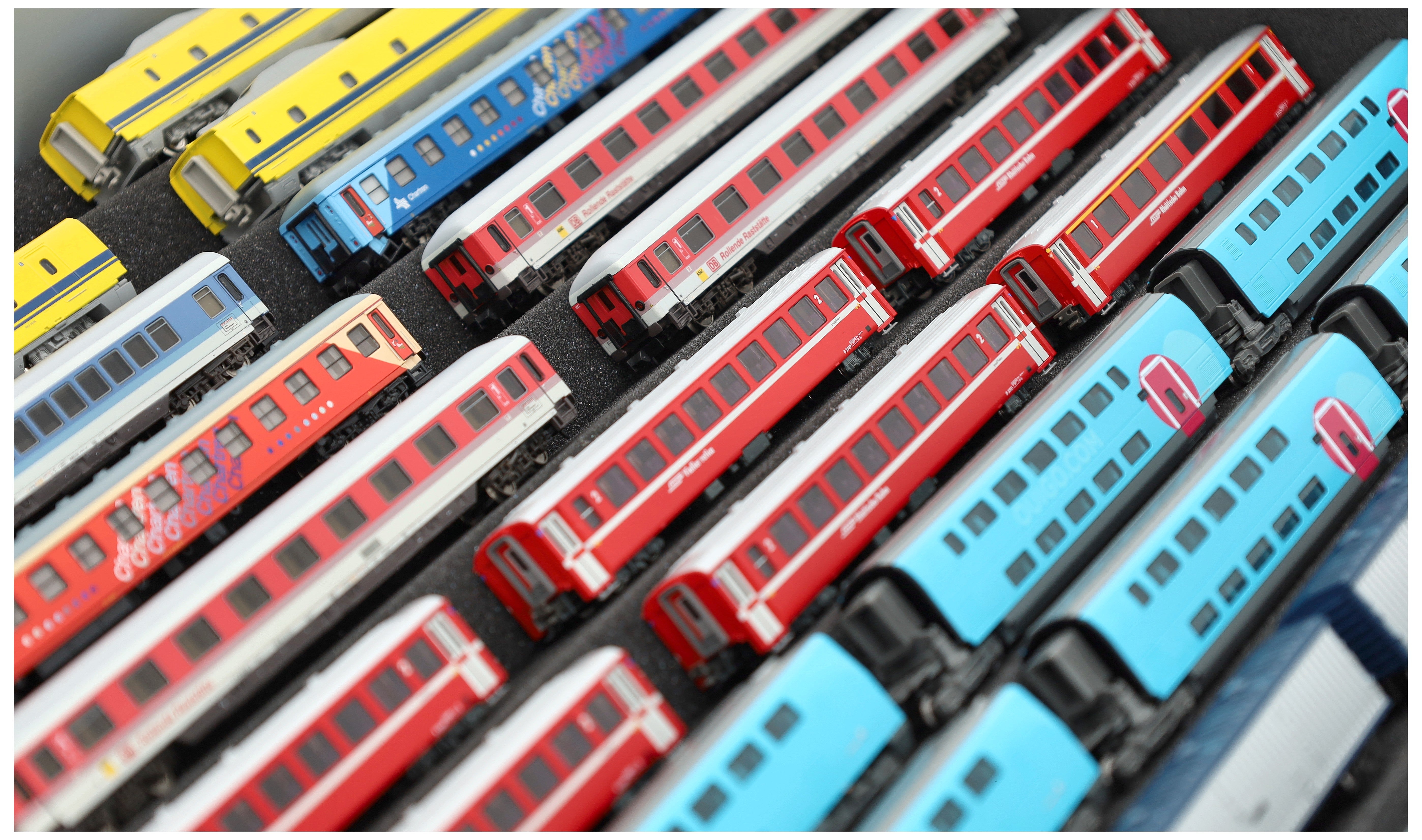 Züge und Wagen sicher verpackt, Kisten stapelbar und gut zu reinigen.