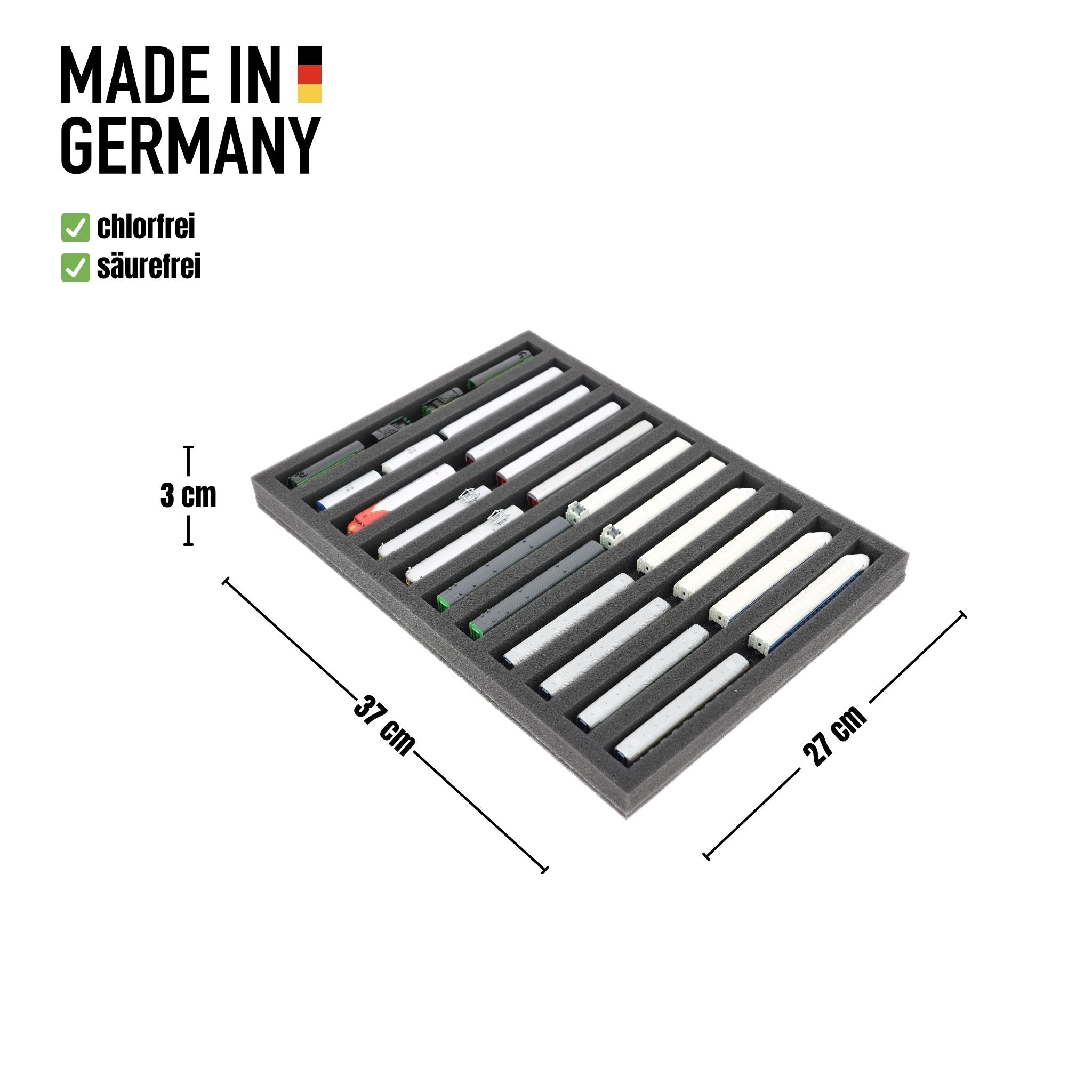 370 mm x 270 mm x 30 mm Schaumstoffeinlage für Modelleisenbahn - Spur Z - 11 Fächer - für liegende Aufbewahrung - IU030A001