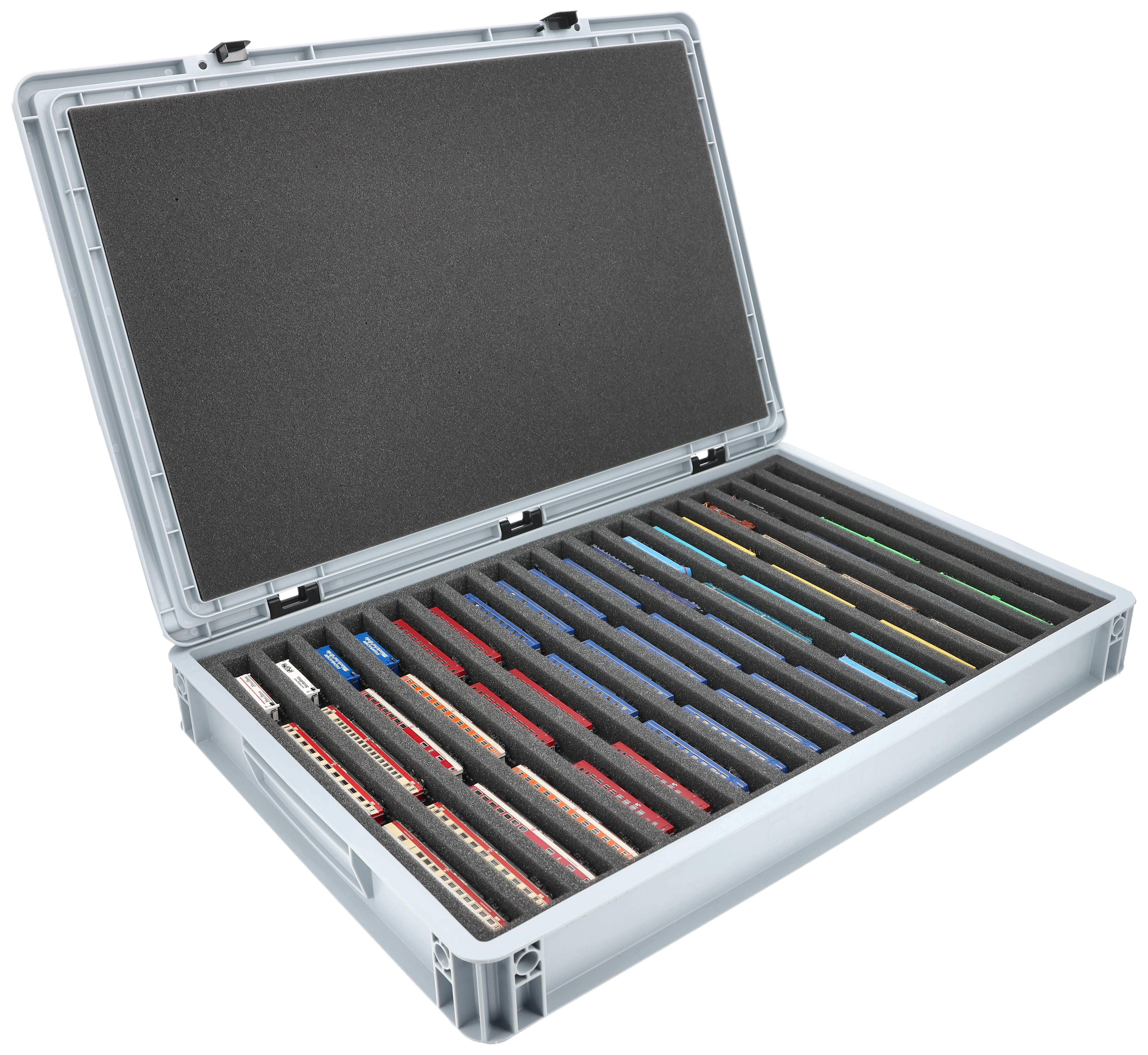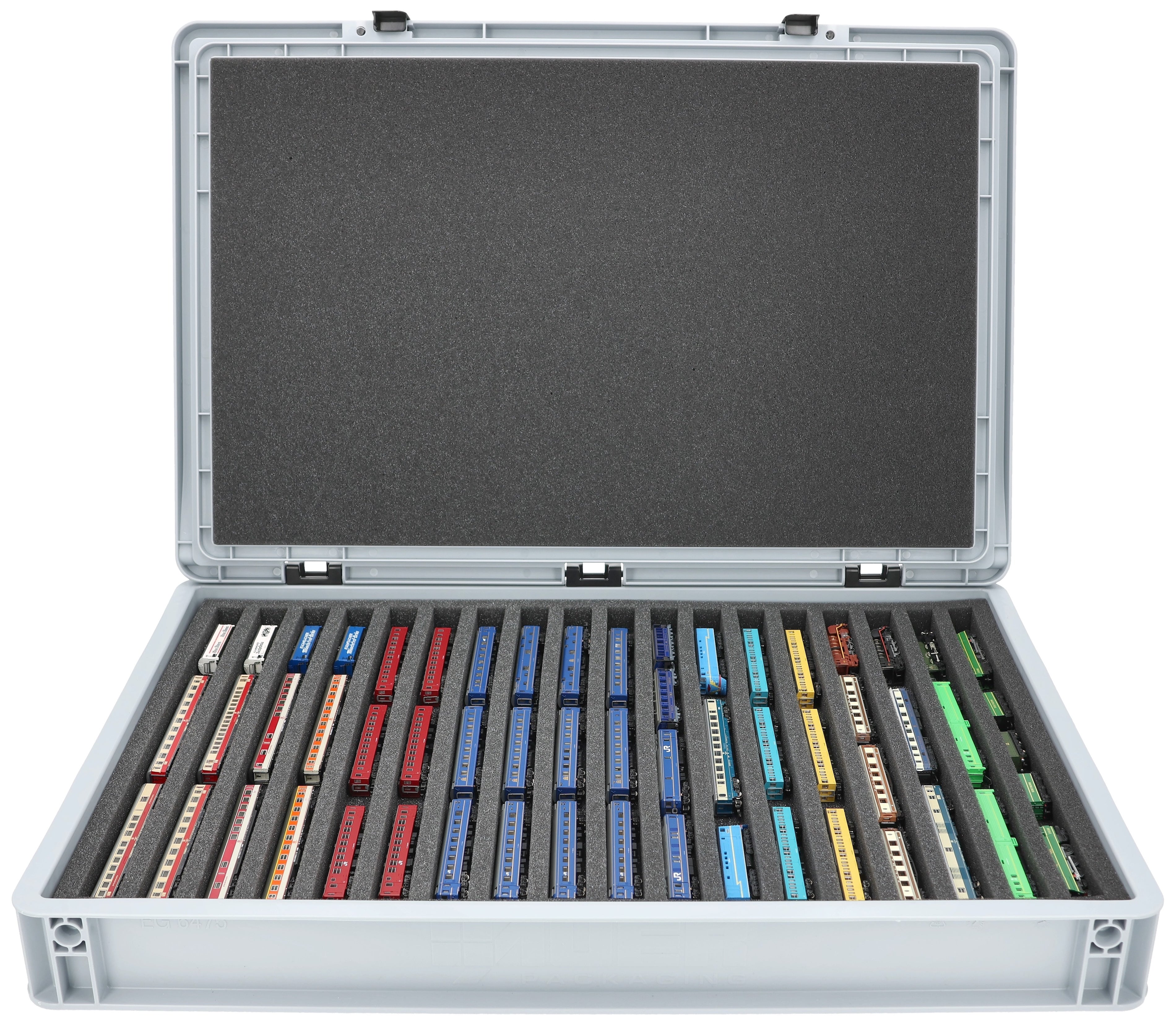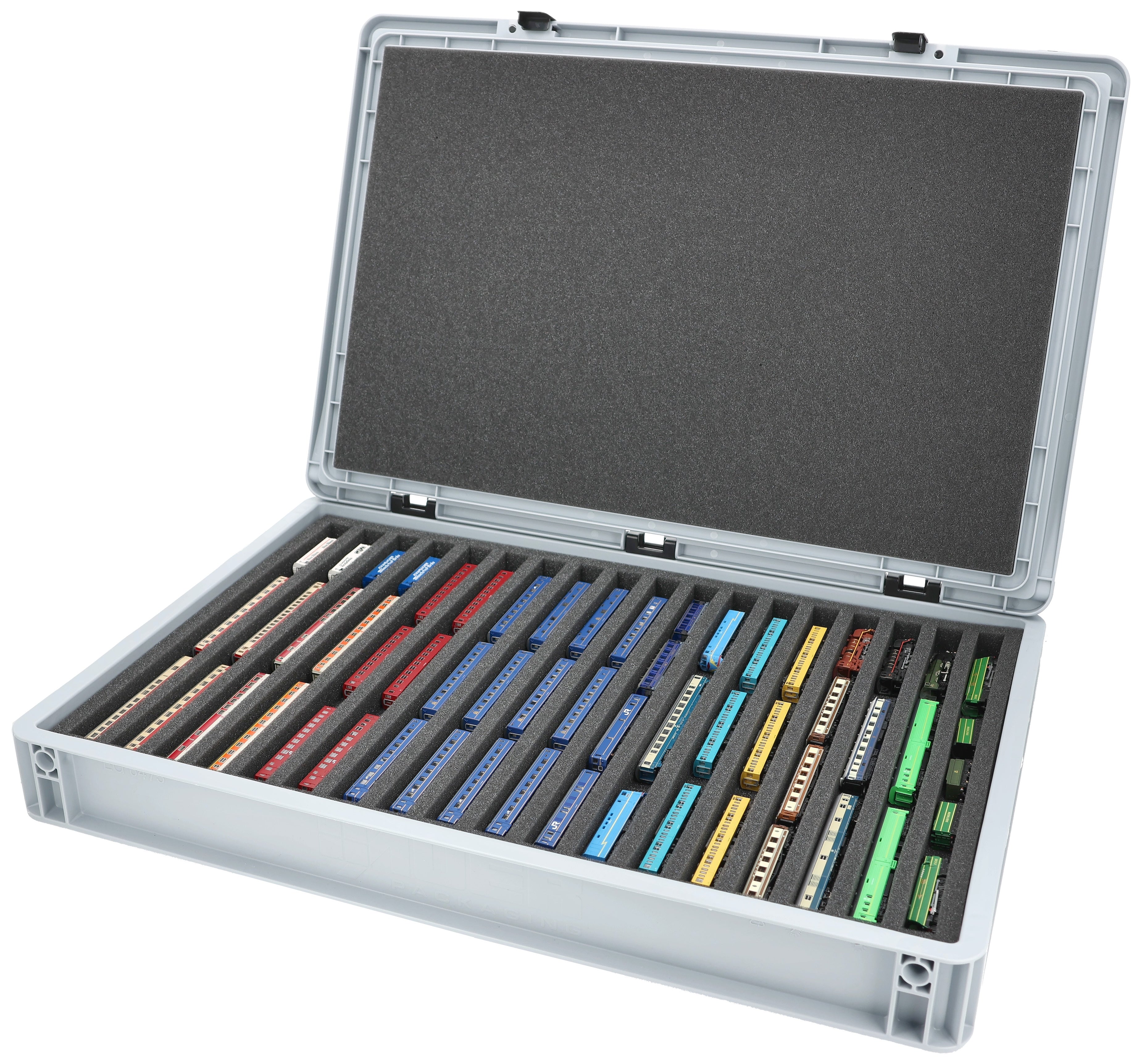 Eurobox 60 x 40 cm Set für Modelleisenbahnen - Spur Z - 18 Fächer - Schaumstoffeinlage zur liegenden Aufbewahrung