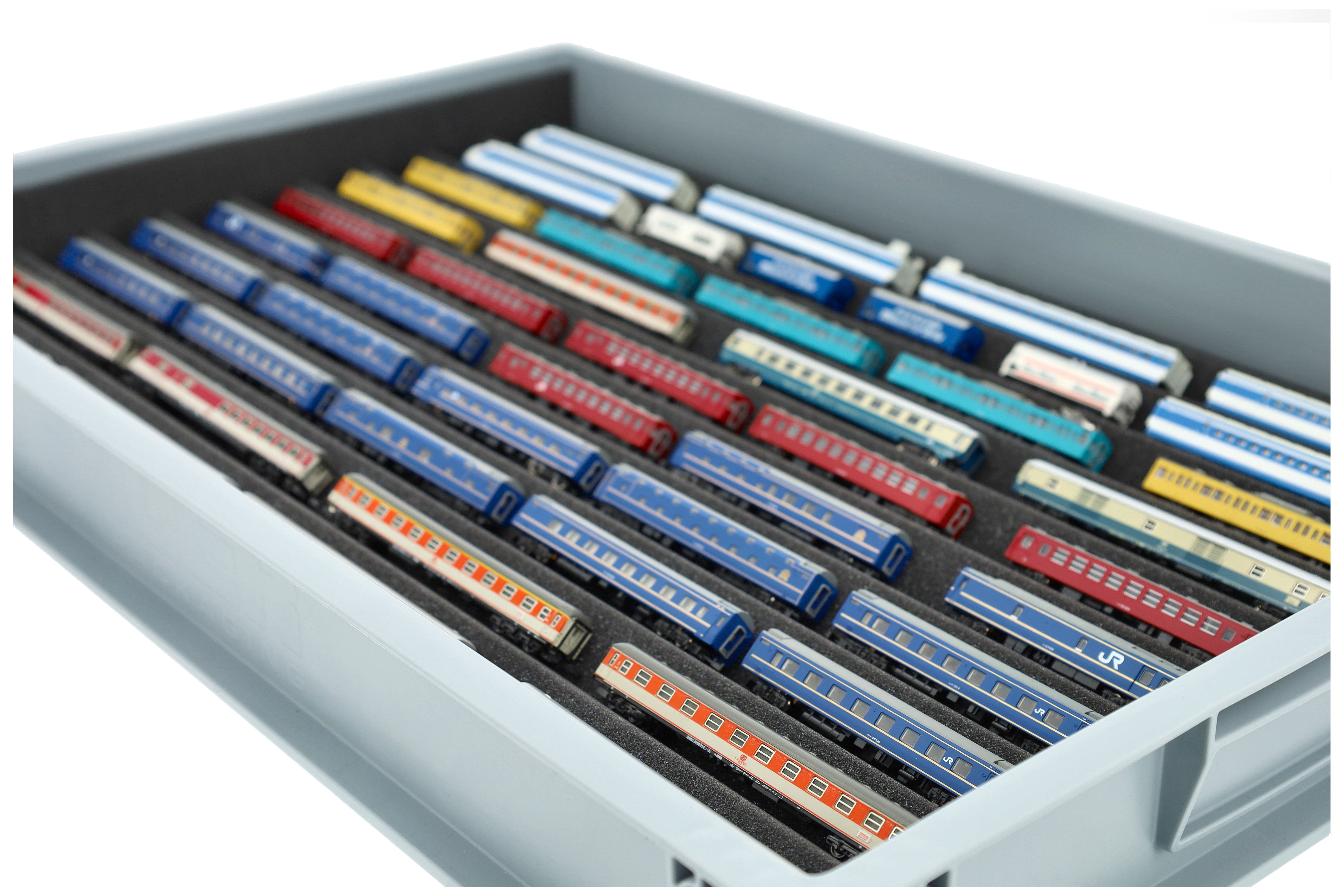 Perfektionieren Sie die Aufbewahrung Ihrer Z-Spur Sammlung mit dem Feldherr Stapelsystem - professioneller Schutz für die kleinste Modellbahn-Spurweite!