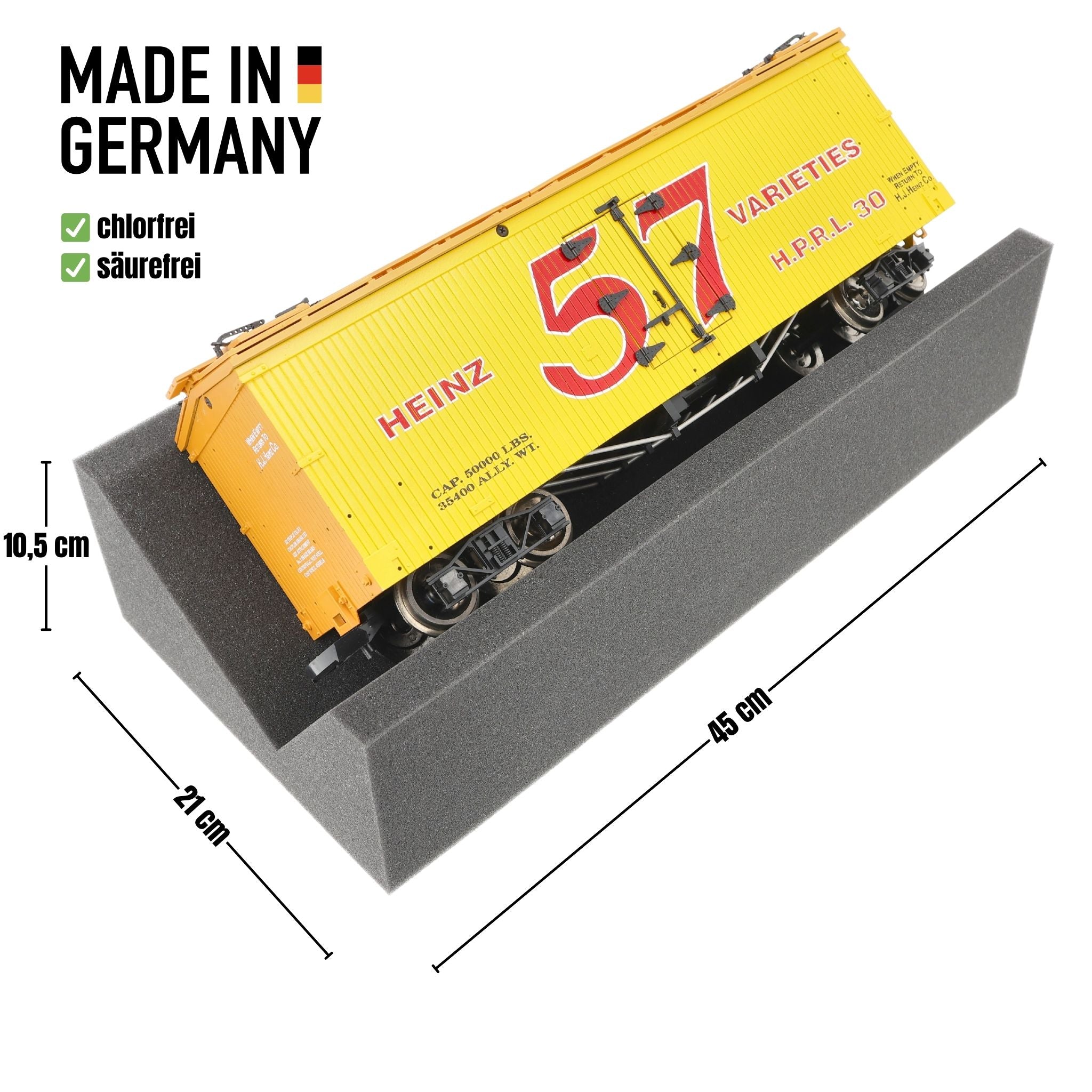 - Kombinierbar für längere Fahrzeuge: Dank des randlosen Designs lassen sich mehrere Einlagen nahtlos aneinanderlegen - ideal für besonders lange Lokomotiven oder Waggons.