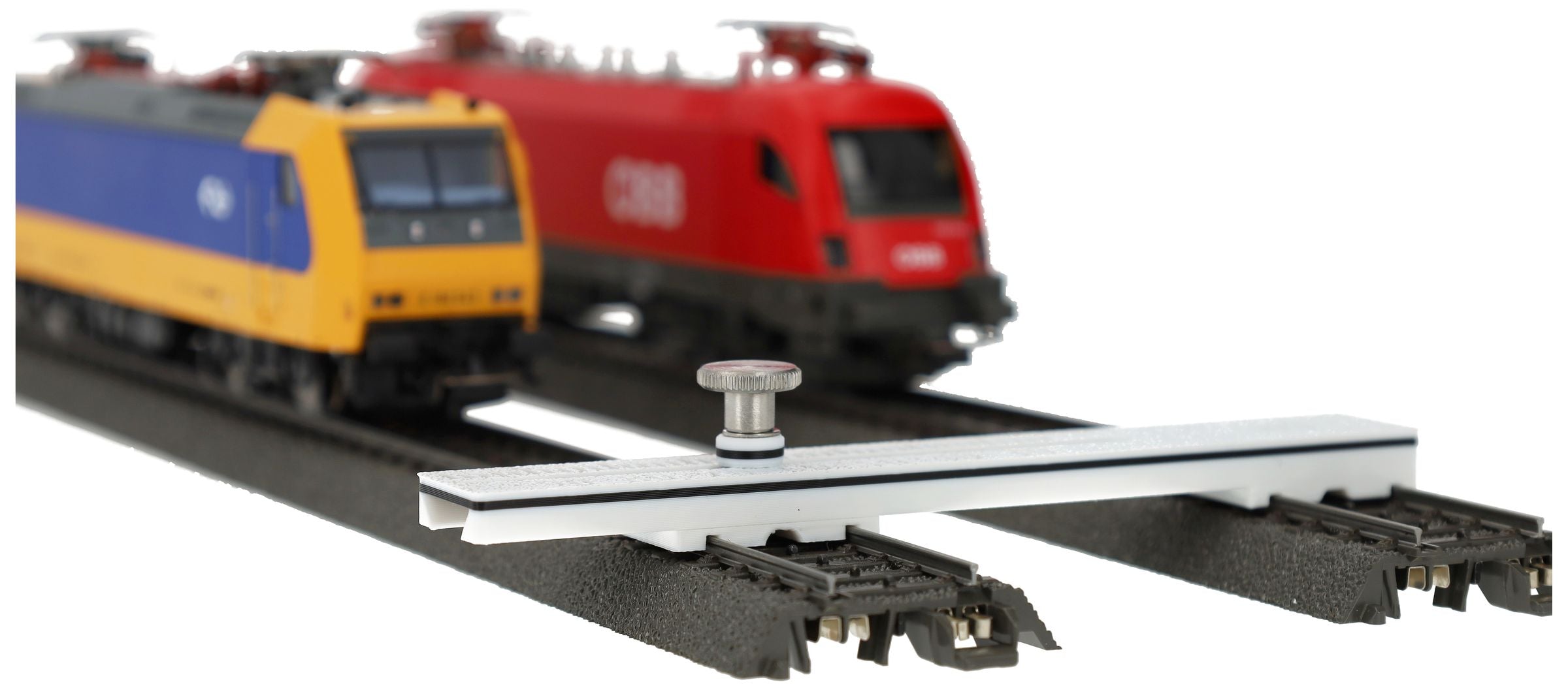 Tool auf die Schienen setzen, gewünschten Abstand einstellen, fertig. Ihre Gleise verlaufen parallel wie mit dem Lineal gezogen – für einen Fahrbetrieb ohne Überraschungen.