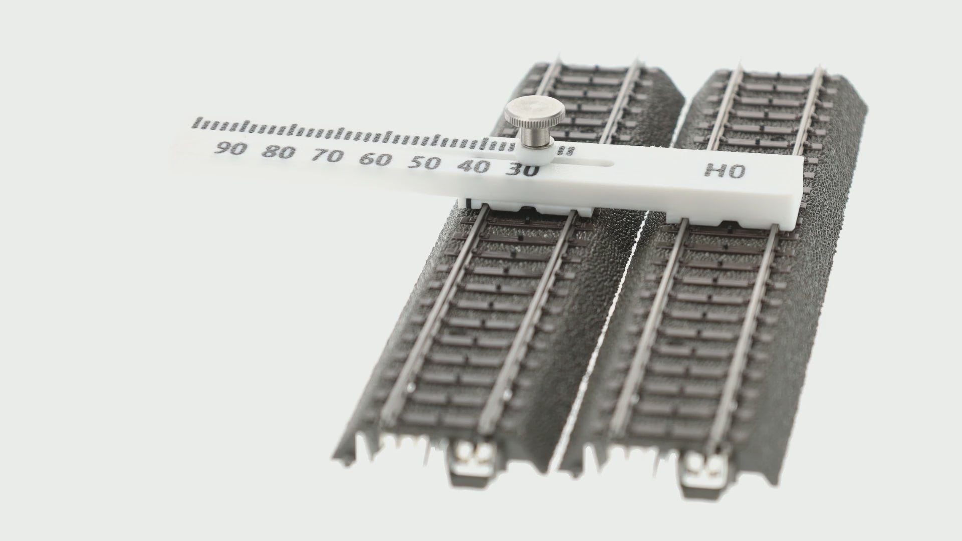 Using the track spacing gauge tool is very simple: place the tool on the tracks and adjust the spacing according to your needs. This ensures that your tracks are perfectly parallel and allows for smooth operation of your model railway.