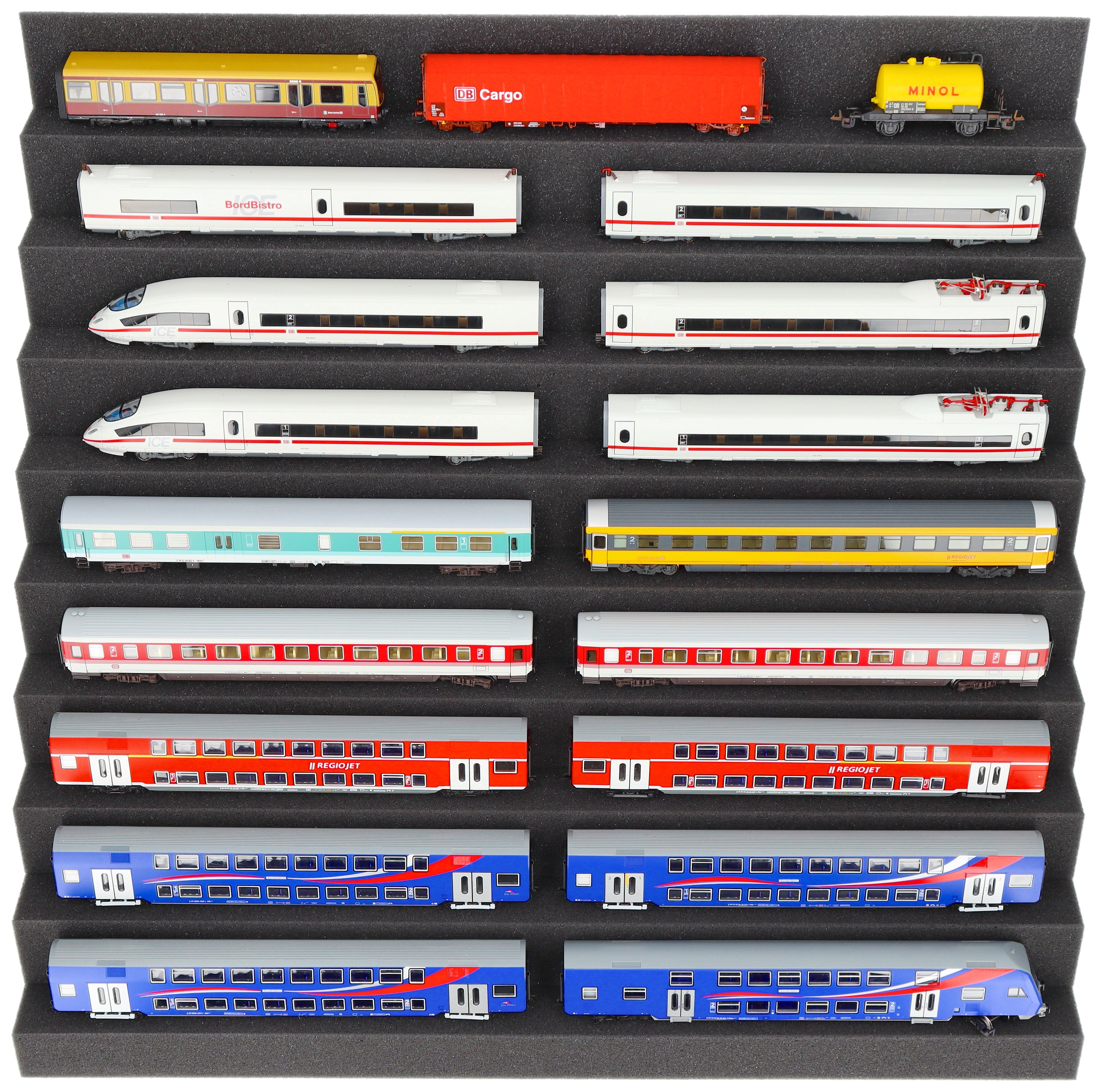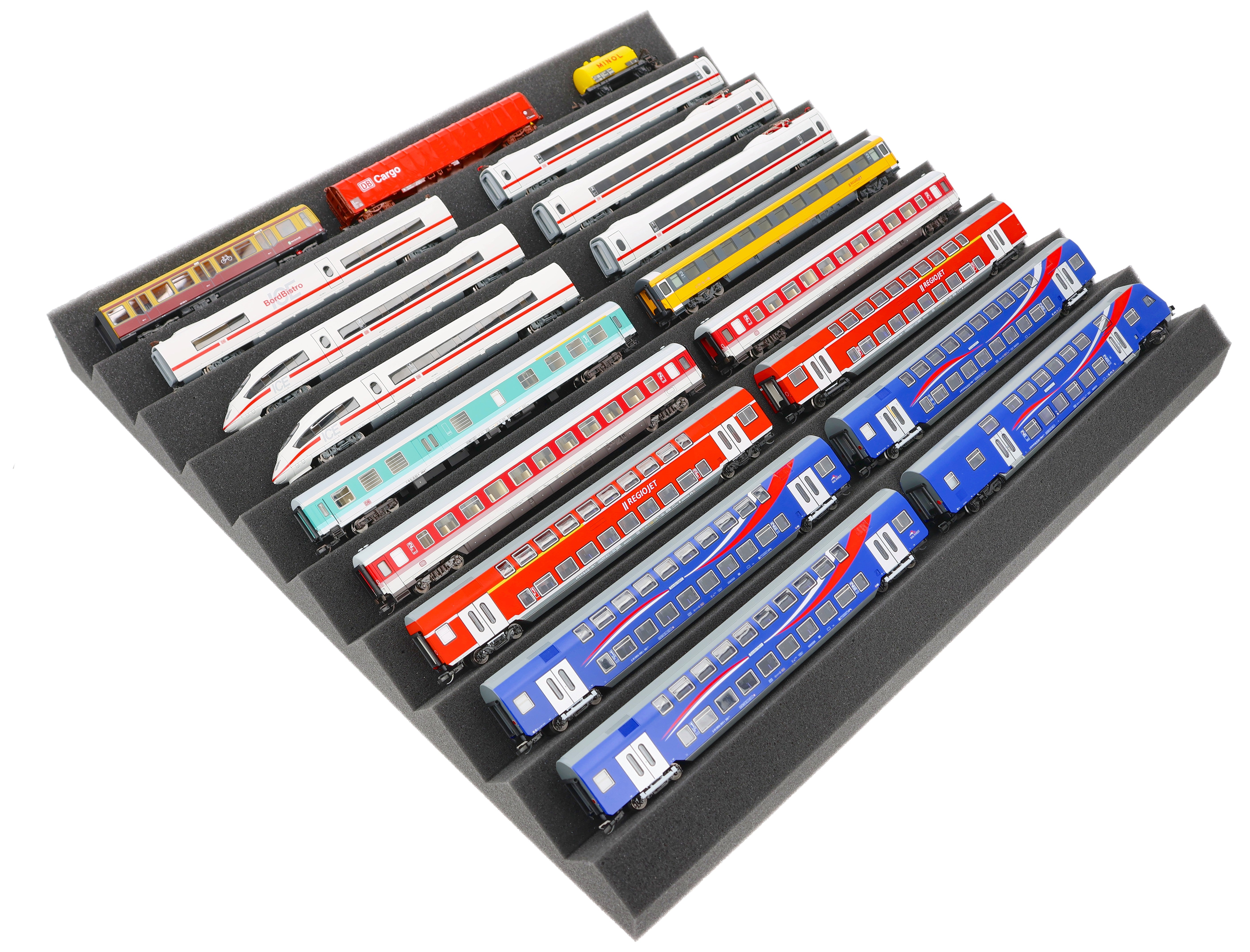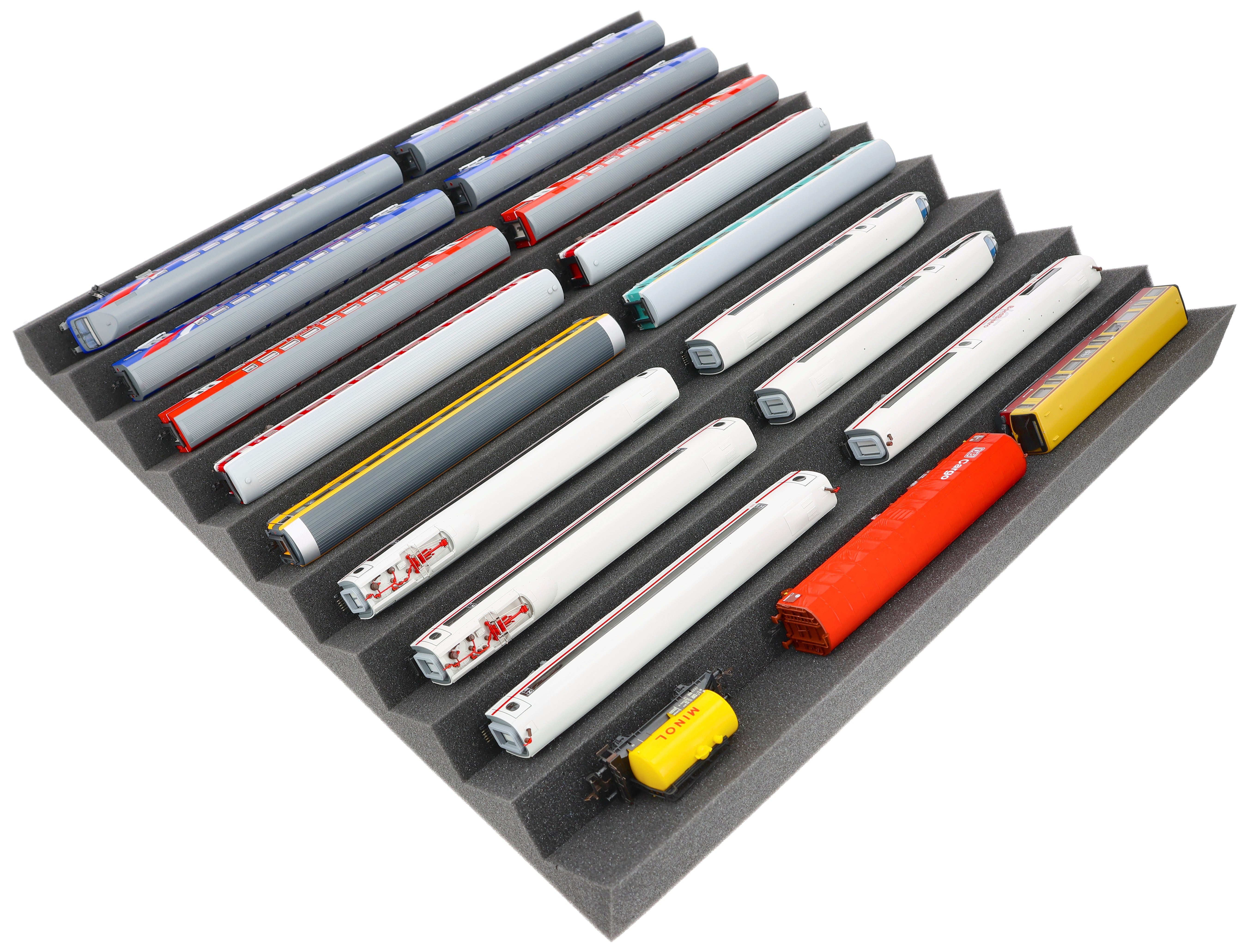 Universal zigzag foam mat for safe and tidy storage of model railways in TT gauge - always cut to the right size.