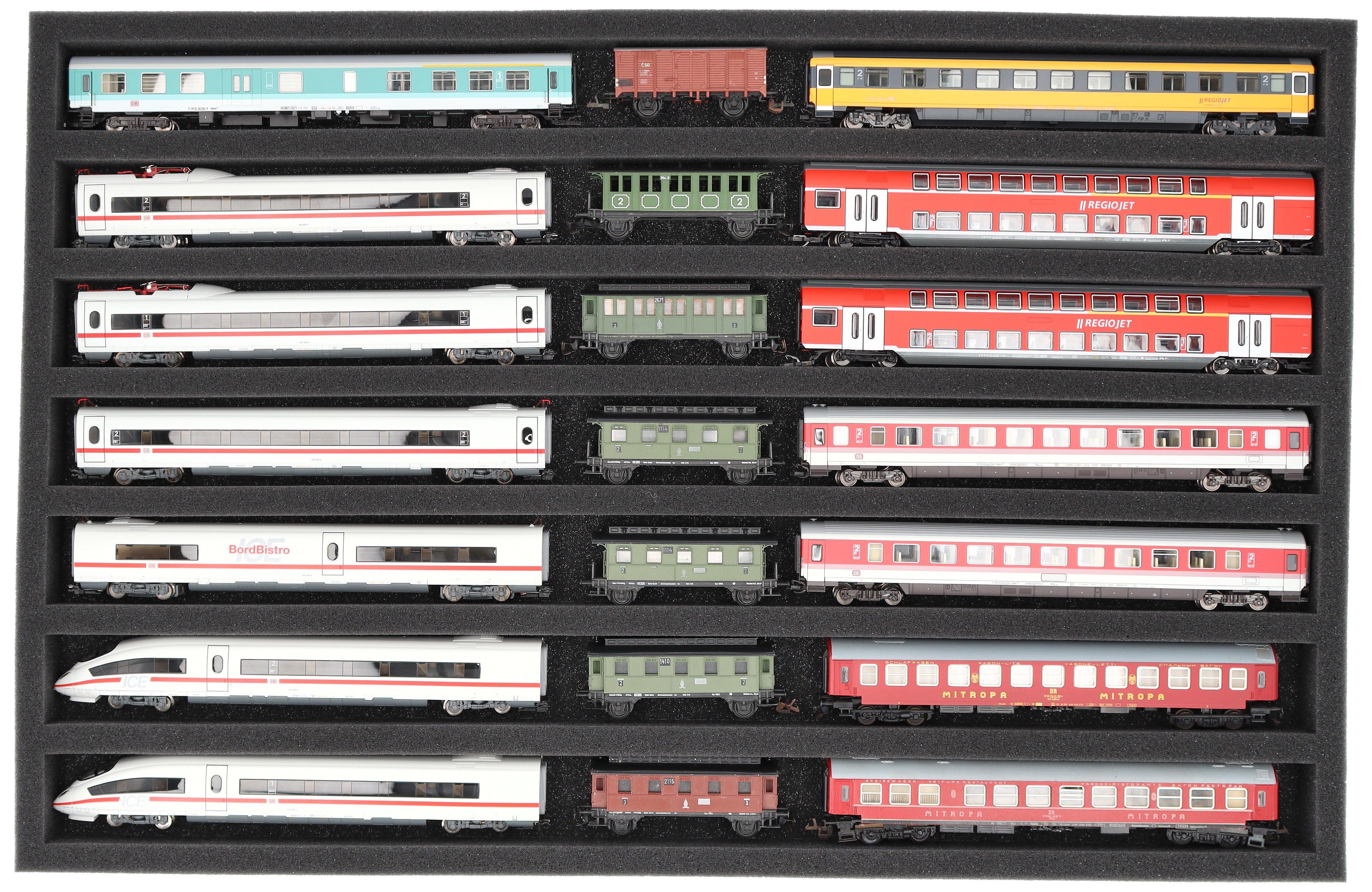570 mm x 370 mm x 40 mm foam insert for model railway - TT scale - 7 compartments - for horizontal storage