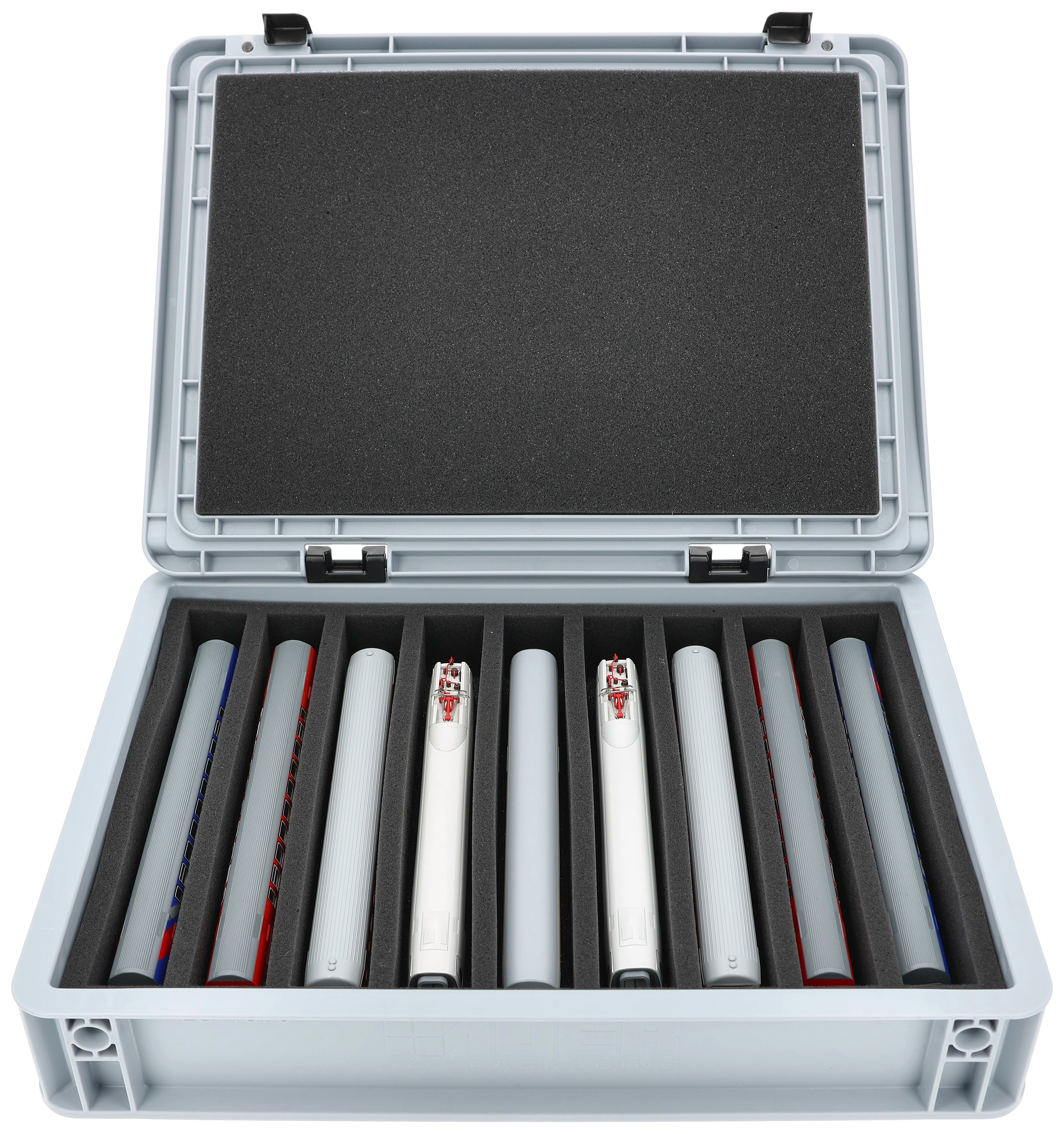 The fine-pored foam reliably protects sensitive details, paintwork and attachments on your models from scratches and damage. The sturdy Eurobox made of shock-resistant plastic provides additional protection from external influences. A simple hinge system with two locks keeps the box securely closed and protects the contents from dust and dirt.
