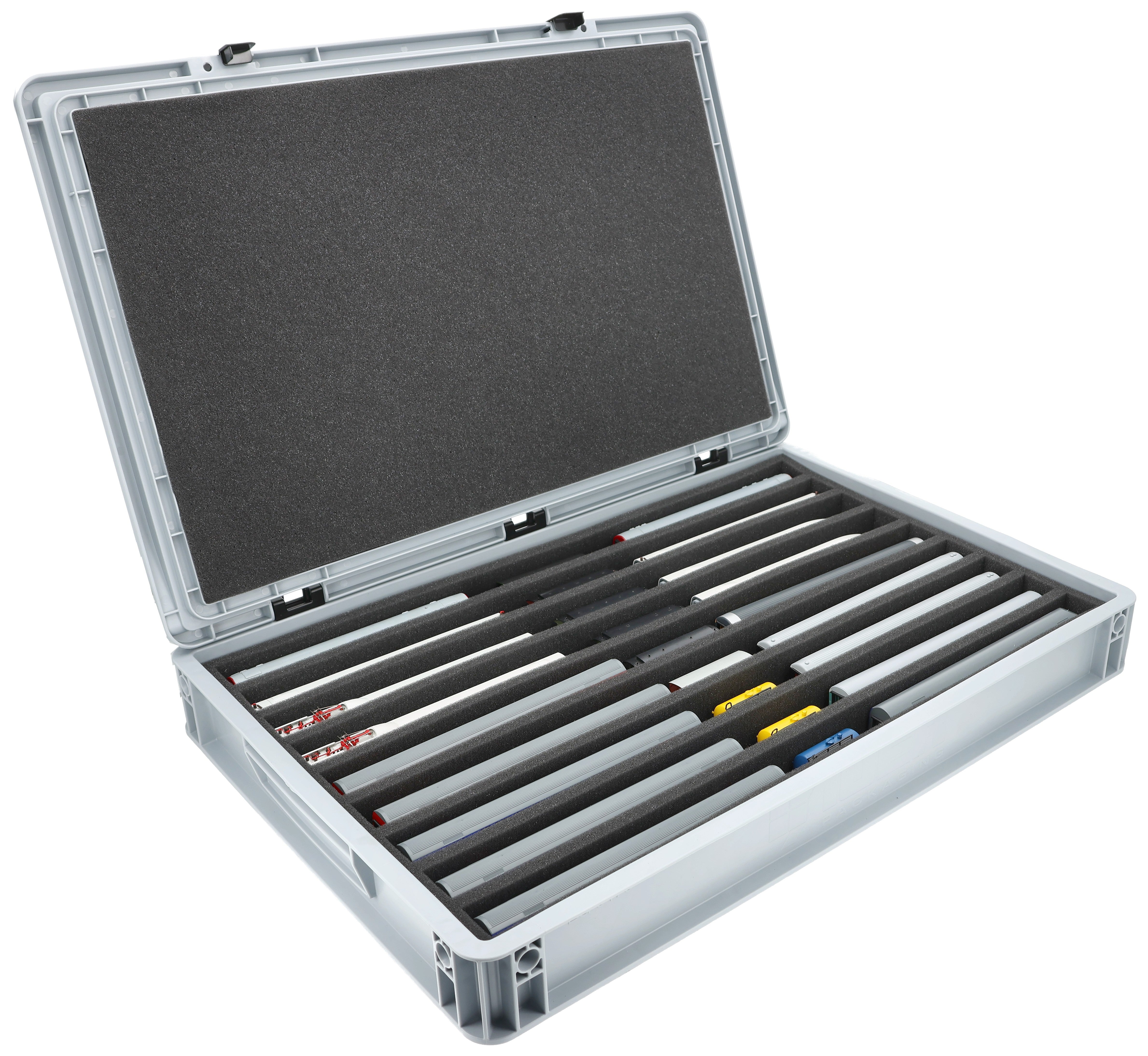 The fine-pored foam reliably protects sensitive details, paintwork and attachments on your models from scratches and damage. The sturdy Eurobox made of shock-resistant plastic provides additional protection from external influences. A simple hinge system with two locks keeps the box securely closed and protects the contents from dust and dirt.