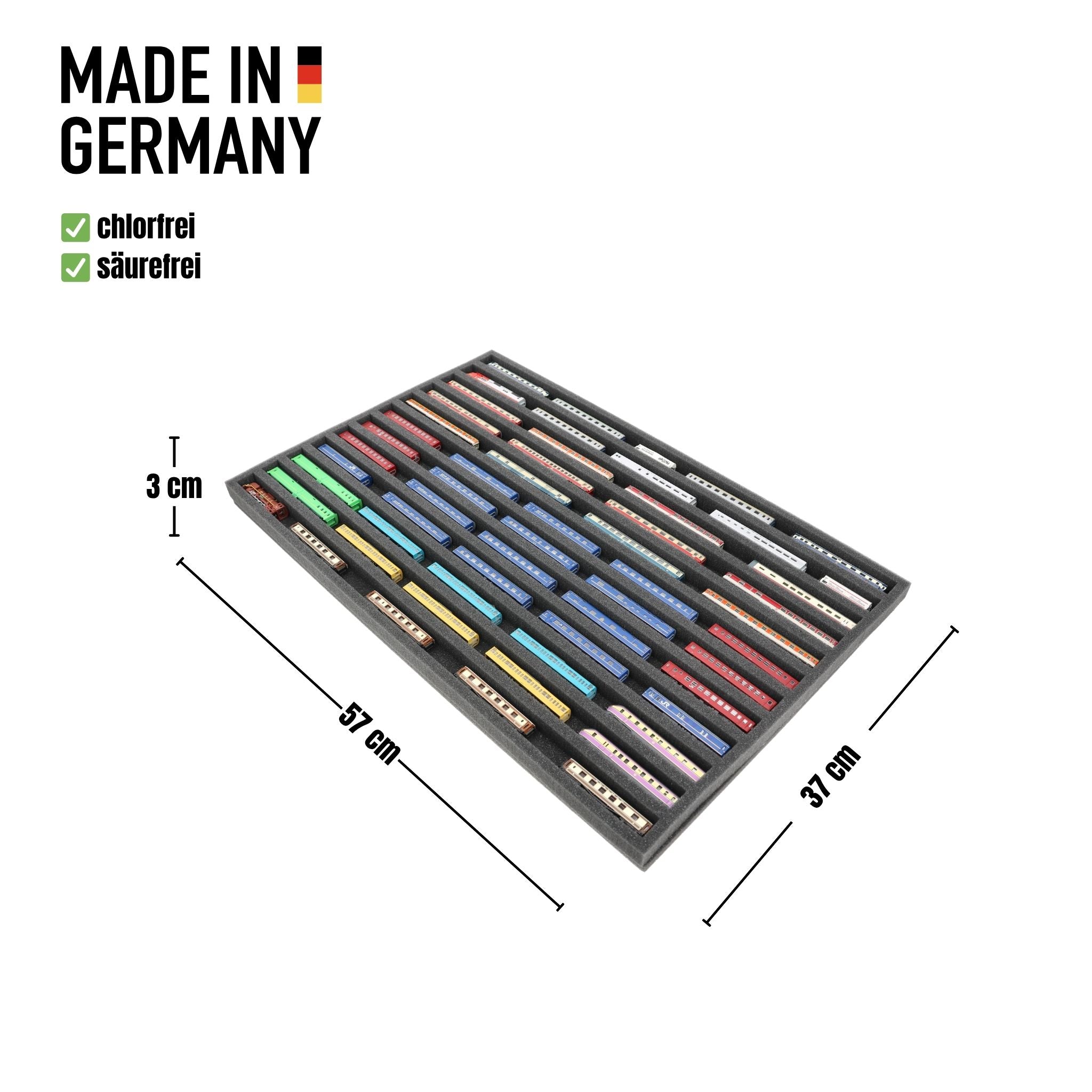 570 mm x 370 mm x 30 mm Foam insert for model railway - Z scale - 12 compartments - for horizontal storage - JV030A001