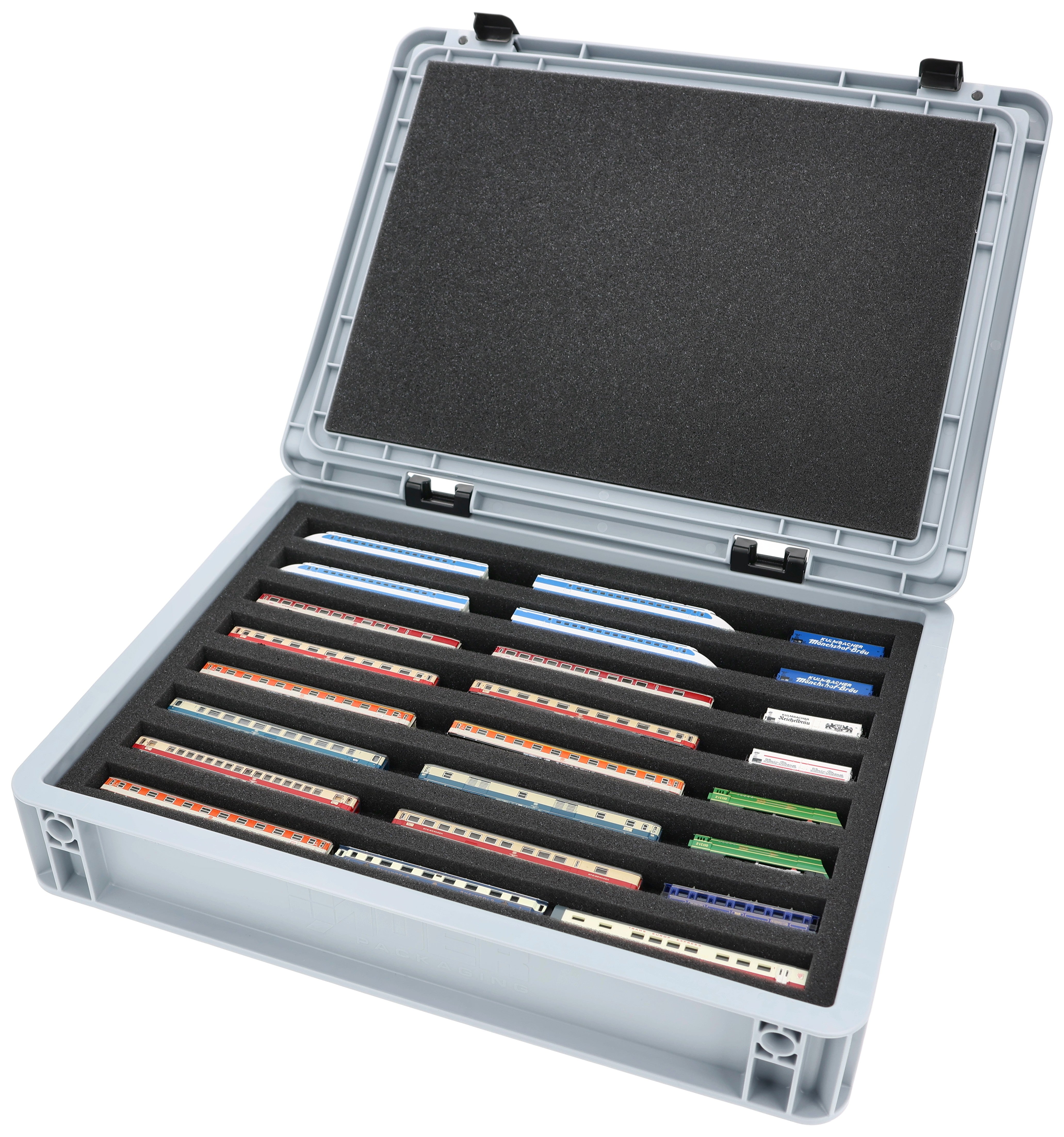 For anyone who wants to transport their Z scale locomotives, wagons and vehicles safely and compactly: this Feldherr set combines a stackable Eurobox with a custom-fit foam insert. Whether for trips to the model railroad club, module meetings, or as a space-saving storage solution at home - your models are well protected at all times.