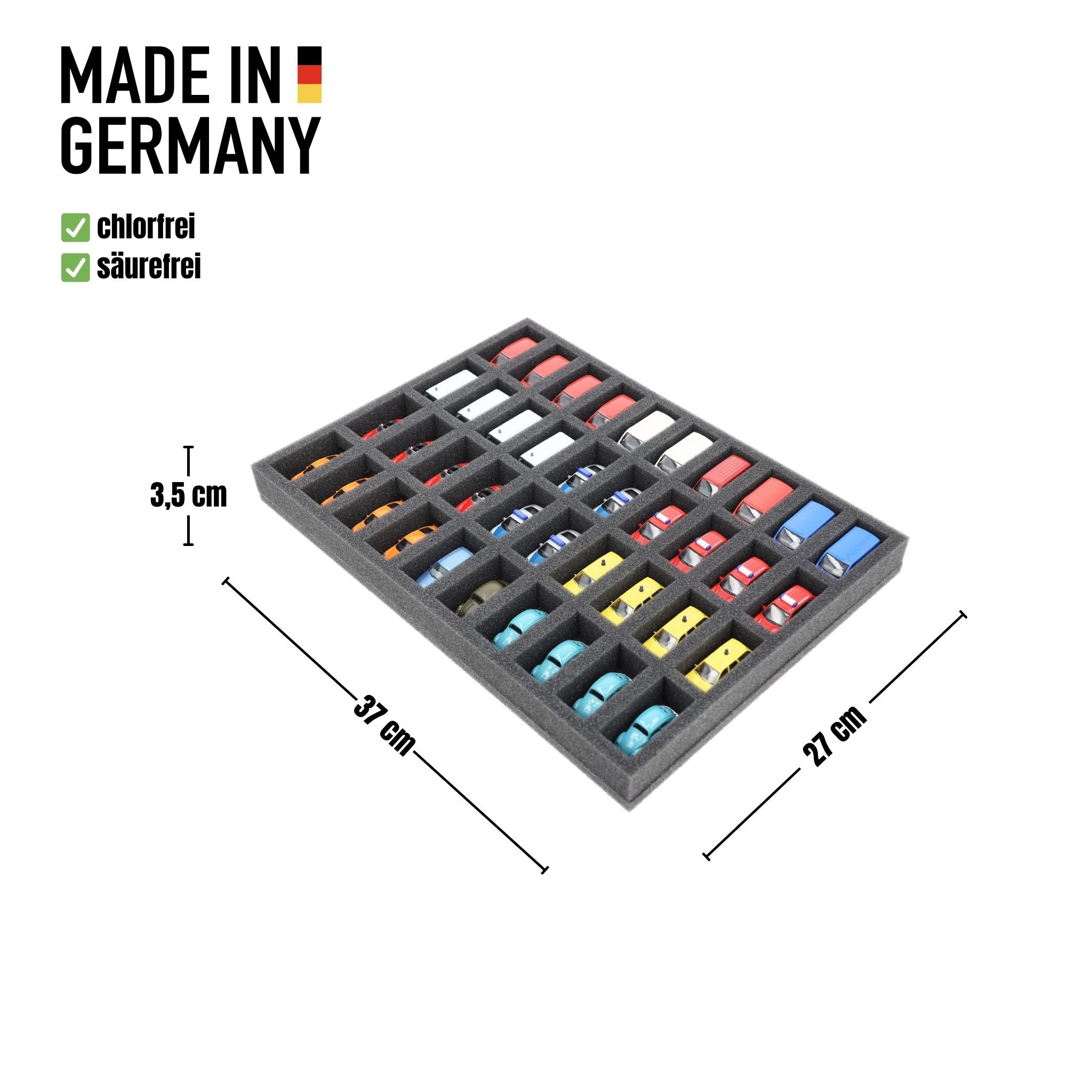 370 mm x 270 mm x 35 mm Foam insert for model cars 1:87 - 40 compartments - IU035A001